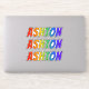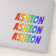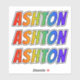 This exciting, fun, and vibrant sticker design features the common first name or given name "ASHTON", with the letters of the name featuring a colourful rainbow spectrum like gradient colouring pattern. It might be a fun present to give to somebody whose first name is Ashton. [~Z0000361]