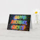 This multicolored and fun birthday greeting card design features the message "HAPPY BIRTHDAY," and the common first name "BRYCE" with the letters having a colourful rainbow spectrum like gradient colouring pattern. The background of the front also features a colourful bursting fireworks inspired pattern. The inside features a customizable greeting message, or could perhaps be cleared and left blank if a message is to be written by hand instead. A greeting card like this could be a fun way to acknowledge the birthday of somebody named Bryce. [~Z0000350]