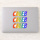 This multicolored, fun, and vibrant sticker design features the common first name or given name "CALEB", with the letters of the name featuring a colourful rainbow spectrum inspired gradient colouring pattern. It might be a fun gift to give to somebody who is named Caleb. [~Z0000361]