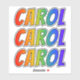 This vibrant, exciting, and multicolored sticker design features the common first name or given name "CAROL", with the letters of the name having a colourful rainbow spectrum like gradient colouring pattern. It might be a fun gift to give to somebody named Carol. [~Z0000361]