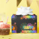 This vibrant and lively birthday-themed wrapping paper design has the message "HAPPY BIRTHDAY, DAVID" having a colourful rainbow spectrum inspired gradient pattern, and an exciting bursting celebratory fireworks inspired background pattern. Vibrant wrapping paper like this might be used when wrapping gifts/presents that are being given in celebration of the birthday of somebody named David. [~Z0000456]