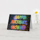 This fun, vibrant, multicolored birthday greeting card design features the message "HAPPY BIRTHDAY," and the common first name "DONNA" with the letters having a colourful rainbow spectrum like gradient colouring pattern. The background of the front also features a colourful pattern inspired by the appearance of bursting fireworks. The inside features a customizable greeting message, or could perhaps be cleared and left blank if a message is to be written by hand instead. A birthday greeting card like this could be a fun way to send a customizable birthday greeting message to somebody named Donna. [~Z0000350]