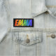 This fun, vibrant, multicolored name tag design features the common first name "EMMA", with the letters of the name having a colourful rainbow spectrum like gradient colouring pattern, on a black coloured background. A nametag like this might be worn by a staff member, a volunteer, or a customer service representative whose given name is Emma, to help identify the wearer to others. [~Z0000344]