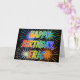This vibrant, multicolored and fun birthday greeting card design features the message "HAPPY BIRTHDAY," and the common first name "ERIC" with the letters having a colourful rainbow spectrum like gradient colouring pattern. The background of the front also features a colourful pattern inspired by the appearance of bursting fireworks. The inside features a customizable greeting message, or could perhaps be cleared and left blank if a message is to be written by hand instead. A birthday greeting card like this could be fun to give to somebody named Eric on their birthday. [~Z0000350]