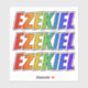 This multicolored, exciting, and fun sticker design features the common first name or given name "EZEKIEL", with the letters of the name having a colourful rainbow spectrum inspired gradient colouring pattern. It might be a fun gift to give to somebody whose first name is Ezekiel. [~Z0000361]