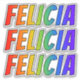 This fun, vibrant, and multicolored sticker design features the common first name or given name "FELICIA", with the letters of the name featuring a colourful rainbow spectrum inspired gradient colouring pattern. It might be a fun gift to give to somebody whose first name is Felicia. [~Z0000361]