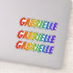This fun, vibrant, and exciting sticker design features the common first name or given name "GABRIELLE", with the letters of the name featuring a colourful rainbow spectrum like gradient colouring pattern. It might be a fun gift to give to somebody whose first name is Gabrielle. [~Z0000361]