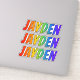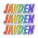 This multicolored, exciting, and vibrant sticker design features the common first name or given name "JAYDEN", with the letters of the name having a colourful rainbow spectrum like gradient colouring pattern. It might be a fun gift to give to somebody named Jayden. [~Z0000361]