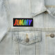 This fun, vibrant, multicolored name tag design features the common first name "JIMMY", with the letters of the name having a colourful rainbow spectrum like gradient colouring pattern, on a black coloured background. A nametag like this might be worn by an employee, a volunteer, or a staff member whose first name is Jimmy, to help identify the wearer to others. [~Z0000344]