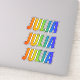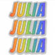 This vibrant, fun, and exciting sticker design features the common first name or given name "JULIA", with the letters of the name featuring a colourful rainbow spectrum like gradient colouring pattern. It might be a fun present to give to somebody who is named Julia. [~Z0000361]