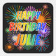 First Name "JULIE", Fun "HAPPY BIRTHDAY" Square Sticker