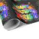 This lively and exciting birthday-themed wrapping paper design features the message "HAPPY BIRTHDAY, KRISTI" having a colourful rainbow spectrum inspired gradient pattern, and a vibrant bursting celebratory fireworks inspired background pattern. Vibrant wrapping paper like this might be used when wrapping gifts or presents being given in celebration of the birthday of somebody named Kristi. [~Z0000456]