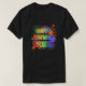 This lively and exciting shirt design features a vibrant bursting celebratory fireworks inspired pattern, and the message "HAPPY BIRTHDAY, KRISTY" having a colourful rainbow spectrum inspired gradient pattern. Shirts like this might be worn by the guests at a party being held to celebrate the birthday of somebody named Kristy. [~Z0000453]