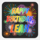 First Name "LEAH", Fun "HAPPY BIRTHDAY" Square Sticker