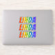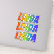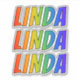 This fun, exciting, and multicolored sticker design features the common first name or given name "LINDA", with the letters of the name having a colourful rainbow spectrum inspired gradient colouring pattern. It might be a fun present to give to somebody whose given name is Linda. [~Z0000361]