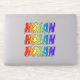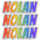 This multicolored, exciting, and fun sticker design features the common first name or given name "NOLAN", with the letters of the name featuring a colourful rainbow spectrum inspired gradient colouring pattern. It might be a fun present to give to somebody named Nolan. [~Z0000361]
