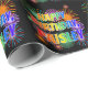 This vibrant and exciting birthday-themed wrapping paper design has the message "HAPPY BIRTHDAY, PAISLEY" having a colourful rainbow spectrum inspired gradient pattern, and a lively bursting celebratory fireworks inspired background pattern. Colourful wrapping paper like this might be used when wrapping birthday gifts/presents that are being given to somebody named Paisley. [~Z0000456]