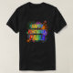 This exciting and lively shirt design features a fun bursting celebratory fireworks inspired pattern, and the message "HAPPY BIRTHDAY, PAULA" having a colourful rainbow spectrum inspired gradient pattern. Shirts like this might be worn by the attendees at a party being held to celebrate the birthday of somebody who is named Paula. [~Z0000453]