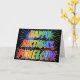 This multicolored and fun birthday greeting card design features the message "HAPPY BIRTHDAY," and the common first name "PENELOPE" with the letters having a colourful rainbow spectrum like gradient colouring pattern. The background of the front also features a colourful pattern inspired by the appearance of bursting fireworks. The inside features a customized greeting message, or could perhaps be cleared and left blank if a message is to be written by hand instead. A birthday greeting card like this might be a fun way to acknowledge the birthday of somebody named Penelope. [~Z0000350]