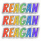 This exciting, multicolored, and vibrant sticker design features the common first name or given name "REAGAN", with the letters of the name featuring a colourful rainbow spectrum like gradient colouring pattern. It might be a fun present to give to somebody whose first name is Reagan. [~Z0000361]