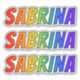 This vibrant, exciting, and multicolored sticker design features the common first name or given name "SABRINA", with the letters of the name featuring a colourful rainbow spectrum like gradient colouring pattern. It might be a fun gift to give to somebody named Sabrina. [~Z0000361]