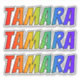 This multicolored, exciting, and vibrant sticker design features the common first name or given name "TAMARA", with the letters of the name having a colourful rainbow spectrum like gradient colouring pattern. It might be a fun gift to give to somebody who is named Tamara. [~Z0000361]