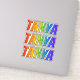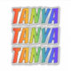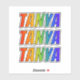 This multicolored, fun, and exciting sticker design features the common first name or given name "TANYA", with the letters of the name featuring a colourful rainbow spectrum like gradient colouring pattern. It might be a fun gift to give to somebody named Tanya. [~Z0000361]