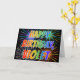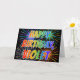 This fun, vibrant, multicolored birthday greeting card design features the message "HAPPY BIRTHDAY," and the common first name "VIOLET" with the letters having a colourful rainbow spectrum like gradient colouring pattern. The background of the front also features a colourful pattern inspired by the appearance of bursting celebratory fireworks. The inside features a customized greeting message, or could perhaps be cleared and left blank if a message is to be written by hand instead. This might be a fun way to acknowledge the birthday of somebody named Violet. [~Z0000350]