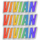 This multicolored, fun, and vibrant sticker design features the common first name or given name "VIVIAN", with the letters of the name featuring a colourful rainbow spectrum like gradient colouring pattern. It might be a fun gift to give to somebody named Vivian. [~Z0000361]
