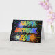 This fun, vibrant, multicolored birthday greeting card design features the message "HAPPY BIRTHDAY," and the common first name "ZOE" with the letters having a colourful rainbow spectrum like gradient colouring pattern. The background of the front also features a colourful bursting fireworks inspired pattern. The inside features a custom greeting message, or could perhaps be cleared and left blank if a message is to be written by hand instead. This might be a fun way to acknowledge the birthday of somebody named Zoe. [~Z0000350]