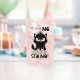 A funny, sarcastic black-and-white graphic design showcases a black cat with frazzled fur and a scowling expression. The black handwritten text says, "First of all, no. Second of all, still no!" Available on a wide variety of products, this design makes a perfect gift for cat lovers.