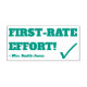 This encouraging rubber stamp design features the praising message "FIRST-RATE EFFORT!" and a custom educator name. It could be used by a school teacher, educator, or tutor when grading student work, to acknowledge that a student has done an exceptional job.