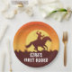 First Rodeo Cowboy Sunset Birthday Paper Plate