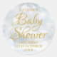 Designed to coordinate with our First Snowflakes baby shower collection. Gentle snowflakes fall across your baby shower details, set in elegant gold text on a magical winter background, this chic baby shower sticker is ideal for sealing invitation envelopes and baby shower party favours.