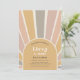 Birthday invitation featuring an arched frame with sun rays. Customize with your information for the birthday boy or girl. Click "click to customize further" to change the font style, size or colour.