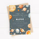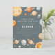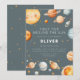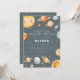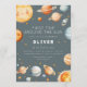 This “First Trip Around the Sun” first birthday invitation features a soft space theme with planets, stars, and a smiling sun in muted blue-gray and warm neutral tones. The artwork colors can’t be edited, but all wording can be personalized. A coordinating back with a simple star pattern keeps the look clean and cohesive.