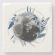 This modern decorative coaster features a stylish blue wreath against a white background with co-ordinating blue grey text which can be edited with your commemorative message as desired. Add your own couple photo which will convert to greyscale automatically to match this minimalist modern theme.