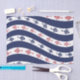 Blue and red fish swim amongst the waves of blue and white stripes.