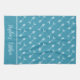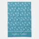 A teal kitchen towel with a fishbone print . Personalize it with your own text .