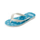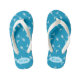A cute pair of blue flip flops for kids with a simple fish bone pattern . Personalize them with the child's name using the provided template .