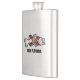 The product is a good size and came exactly as it was pictured. The lid is not attached to the flask, which could be dangerous on drunken nights... The print came out surprisingly well and looks very sharp. Would definitely recommend.