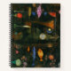 In Fish Magic, Paul Klee creates a magical realm where the aquatic, the celestial, and the earthly intermingle. A delicate black surface covers an under layer of colours, which the artist revealed by scratching and scrawling designs in the black paint. At the centre of the painting, a square of muslin is glued onto the canvas. A long diagonal line reaching to the top of the clock tower is poised as if to whisk off this subtle curtain.