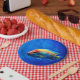 These paper plates have a fish pictured on them.