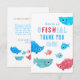 These adorable, illustrated fish thank you cards feature adorable illustrated fish swimming around your card with the funny pun "this is an o-fish-ial thank you card"! Thank your guests with a heartfelt message that you can personalize on the back side of the card. The perfect match for your pool party, summer celebration, or under the sea themed birthday parties! Matching invitations available.