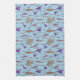 Watercolor fish & purple rays are friendly sea creatures on this bright blue kitchen towel. Sometimes they gather together of a meeting of the minds.