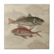 Antique fish engraving of red perch, or redfish - This fishing gift is based on an early coloured engraving by Mark Catesby (British, 1679-1749). The beautiful fish engraving is from "The Natural History of Carolina, Florida and the Bahama Islands", London, 1754 edition. The vintage fish engraving is titled "Perca rubra & C". The red perch is a common name of fish that refers to several species of fish. The Percua is actually the common Perch, a wonderful little game fish, generally living in fresh water. The saltwater dwelling red drum is also often referred to as a redfish or red perch. The vintage fish image of red perch shows two fish swimming past each other, the bottom fish is red while the top perch is grey and red. In many of our red perch fish gifts, there is a background showing light images of fish swimming by, and capped with a touch of calligraphy that talks about red perch.