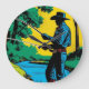 Fisherman on Riverbank Large Clock