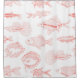 Hand - drawn vector pattern with various fishes in Living Coral colour and white background.