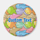 Seamless pattern background of colourful happy, smiling fish cartoons. Custom text.