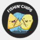Fishin chips Funny Food Pun Dark BG Classic Round Sticker